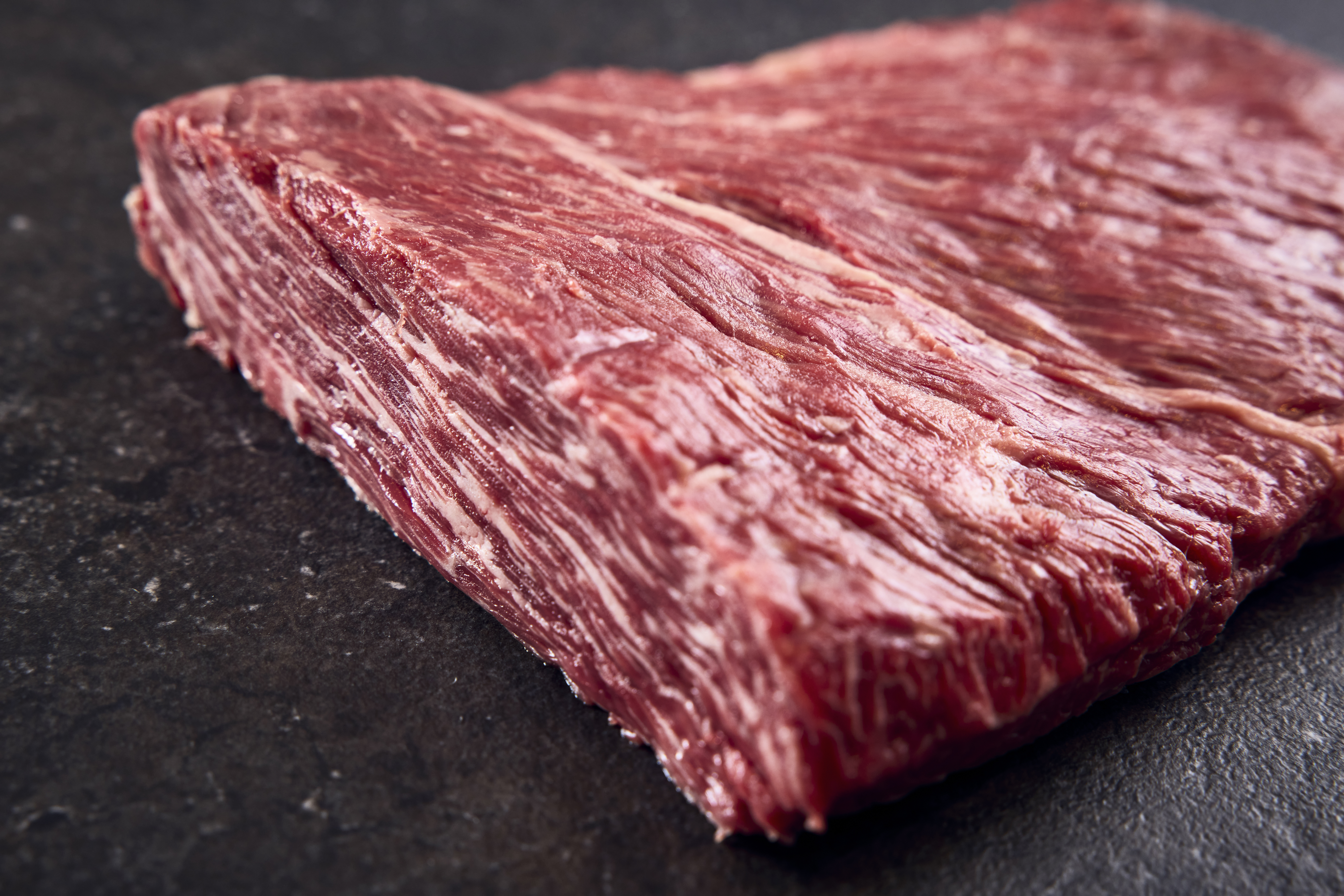 Unser Bavette lebt von der Kombination aus kräftigen Aromen und einer herrlichen Saftigkeit durch das zartschmelzende intramuskuläre Wagyu-Fett. Die Fasern des Bavette sind etwas grober gebündelt - die Textur, die dabei entsteht, ist mit kaum einem anderen Steak vergleichbar: Mürb, saftig und cremig beim Kauen.