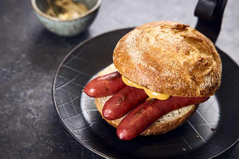 Die gefrorenen Würste über Nacht im Kühlschrank auftauen und in der Pfanne langsam erhitzen, damit der Naturdarm nicht aufplatzt.